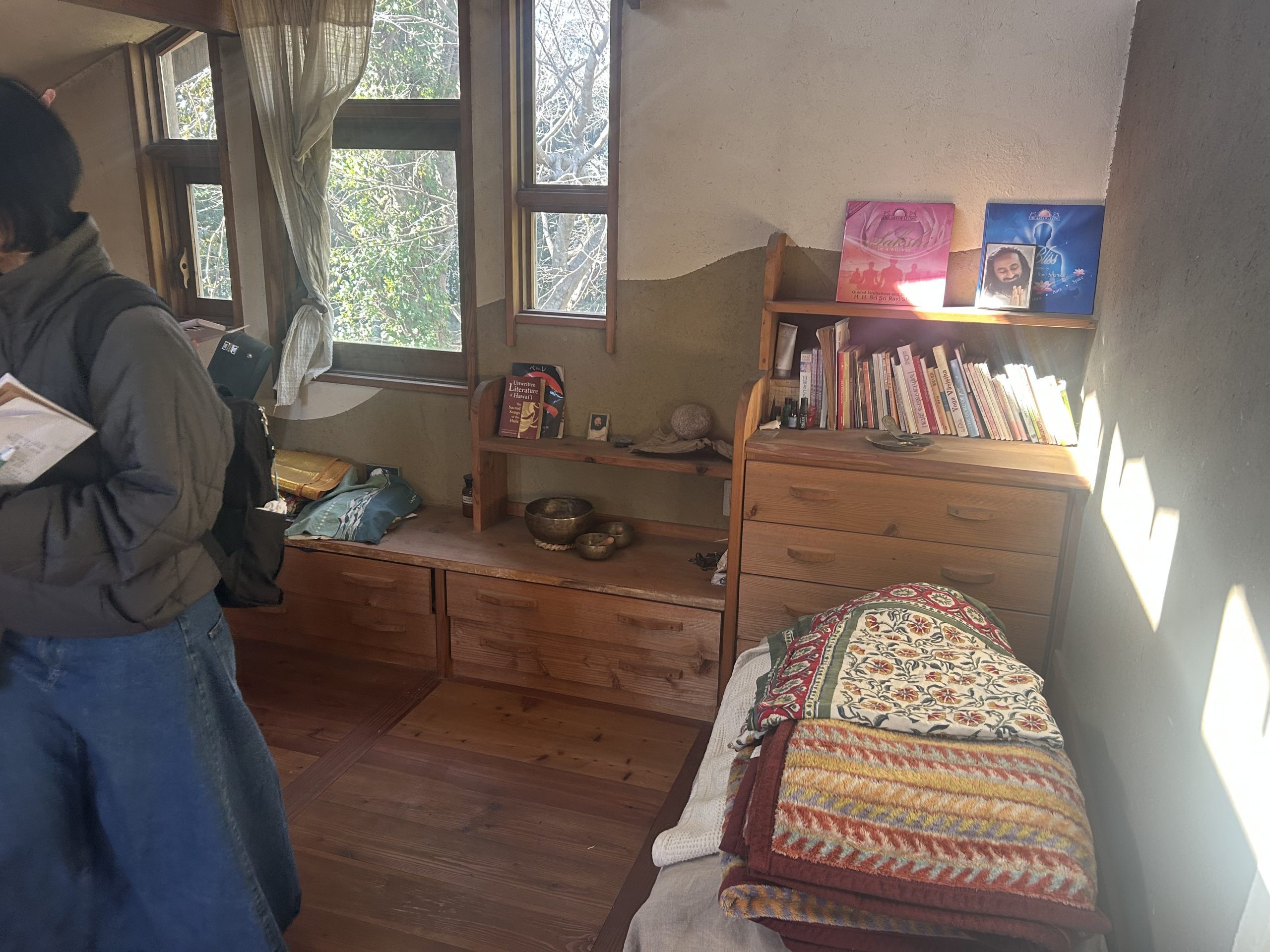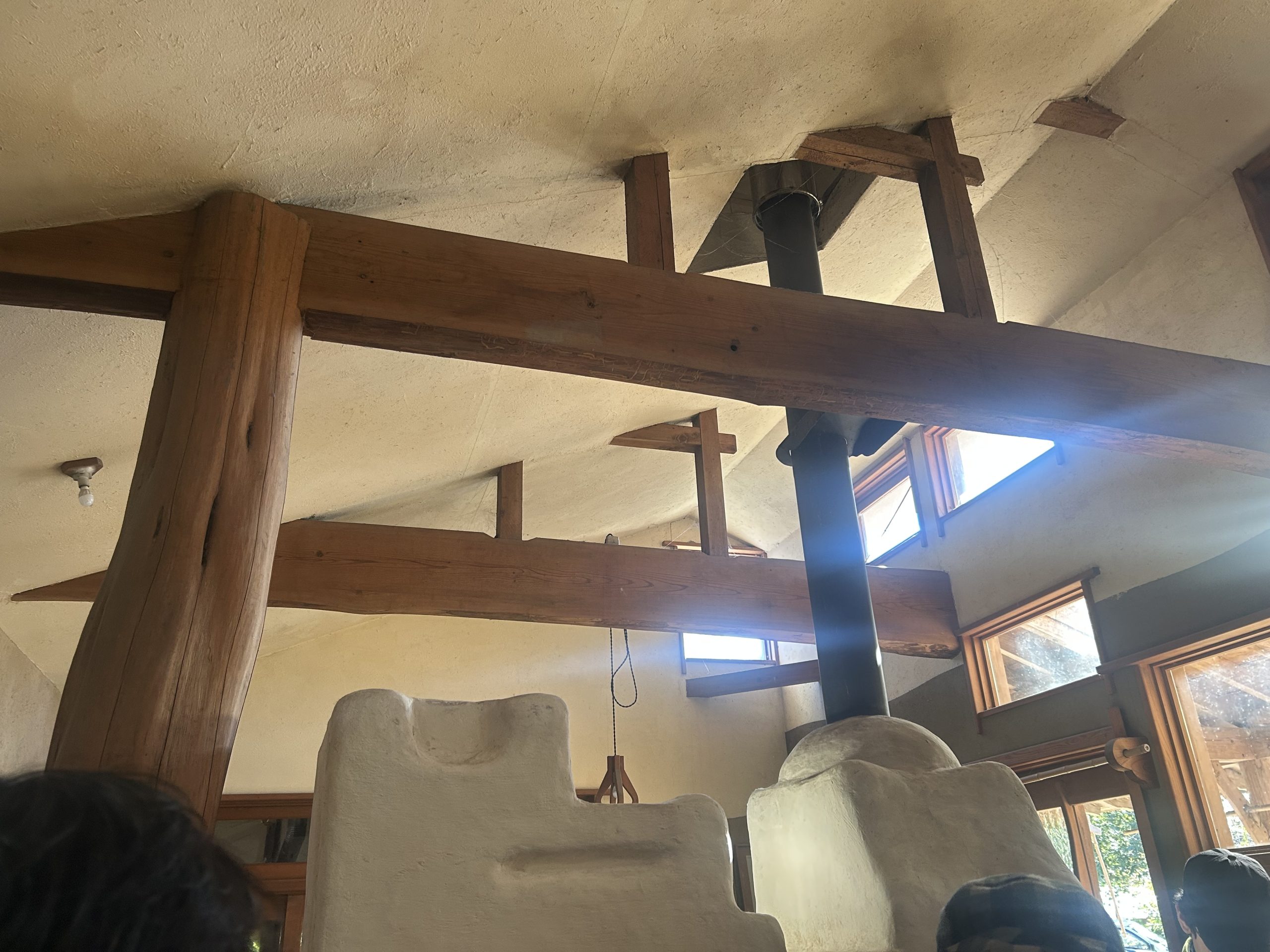 つながったご縁で、先日、千葉県いすみ市にある光風林さんの自然素材の家を見学させていただきました。その住まいは、現代の利便性よりも、自然の力を借り受け、人間が自然に調和する暮らし方に重きをおいていました。自然素材を活かした家づくりについて学び、その大切さを改めて体感させていただきました。手作りのかまどやロシアの蓄熱ストーブ「ペチカ」、五右衛門風呂、檜風呂など、季節ごとの太陽光を活用する設計が施されていました。地域の自然素材を用いた建築は、自然との共生を感じさせ、リコネクトビレッジのビジョンにも取り入れたいと強く感じました。
