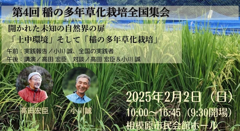 先日、稲の多年草化栽培について提唱する小川誠さんの稲の多年草化栽培全国集会が開催されました。参加予定だったのですが、急遽行けなくなってしまいました。でも、ご縁で友人のご主人が小川誠さんの下で稲の多年草化栽培について学んでいることを知りました。そこでさらに興味が湧いたため、少し調べてみました。