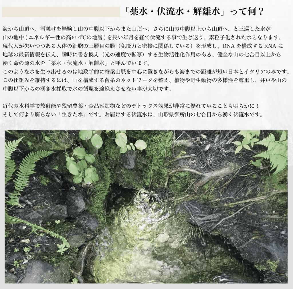 それはただのH2Oではなく、山々を巡り、大地をくぐり抜け、微生物や微細な鉱物たちと調和しながら、まるで“いのち”のように生きている水。